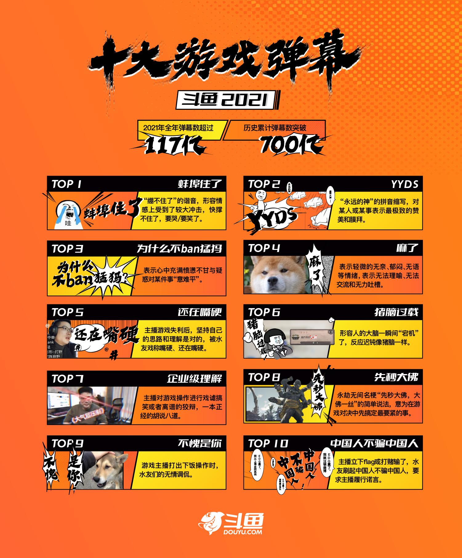 每一次观看电竞比赛或游戏直播,玩家们都有许多话想要和小伙伴们一同分享。12月28日,斗鱼公布了2021年平台发送弹幕的总数,足足达到了117亿条,比2020年的斗鱼弹幕总数还要多了近8亿条。水友们不仅变得越来越活跃了,脑洞也越来越大了。